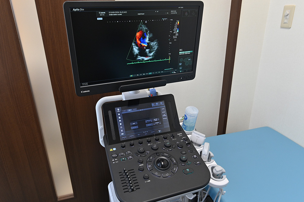 心臓の動き、大きさ、弁の働き、血液の流れなどを観察し、心臓肥大、弁膜症、 心筋梗塞、先天性奇形などの診断や治療方法の選択に役立ちます。また心不全の状態評価なども行います。